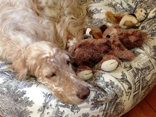Sassy's visit with us in California, she'd just been spayed.