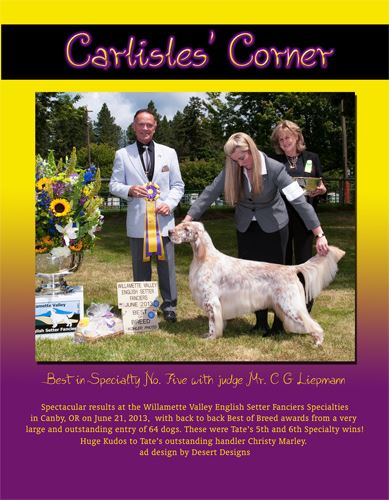 Tate's Group 3rd after winning BOB at the Ranier Sporting Dog Fanciers Specialty 2013