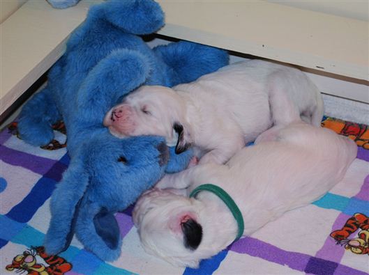day 16 Nova & Kiss with her head in Nova's bowl... she'll take to solid food just fine!