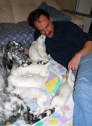John's visit with the pups: owwww!